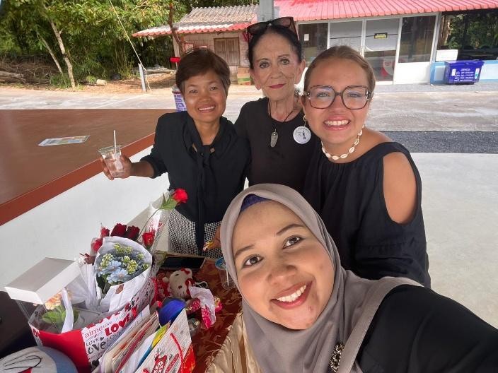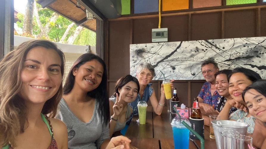 Nous avons été très heureux aussi d’accueillir Dolores, son fils et une amie. Marraine de Khao Hom, c’était la première fois que Dolores découvrait Natacha School ainsi que sa filleule !