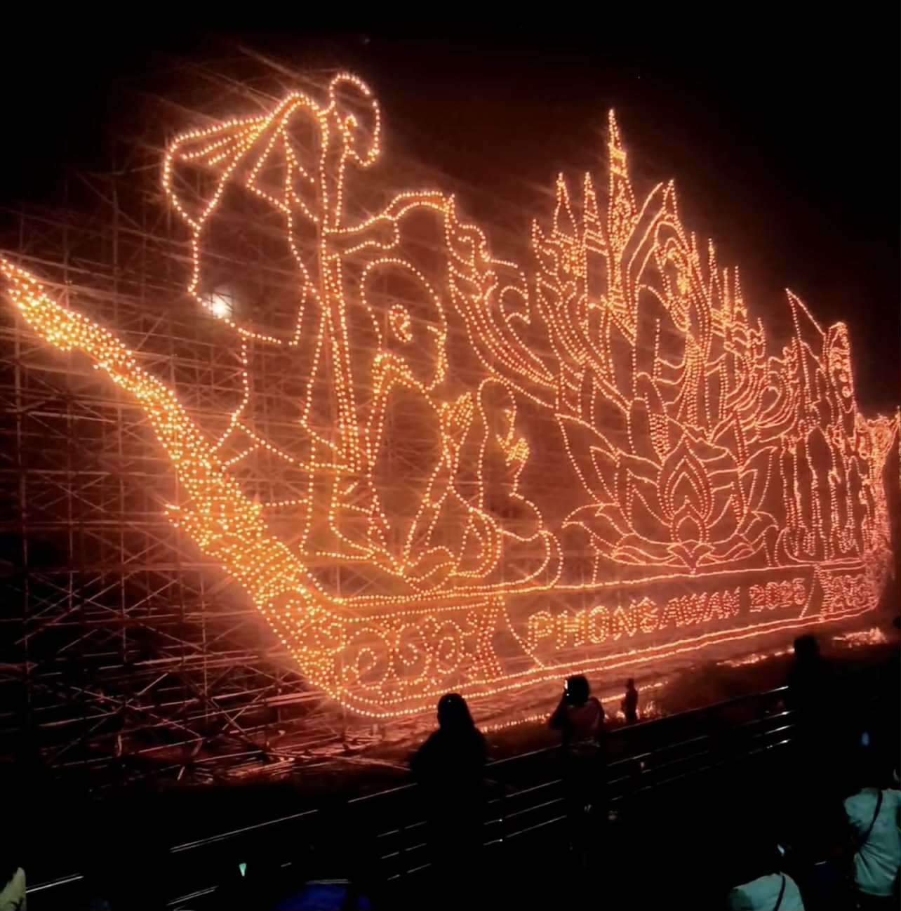 Et ici, à Nakhon Phanom, cette nuit n’est pas une nuit comme les autres — c’est celle du Lai Ruea Fai, le festival des bateaux illuminés.