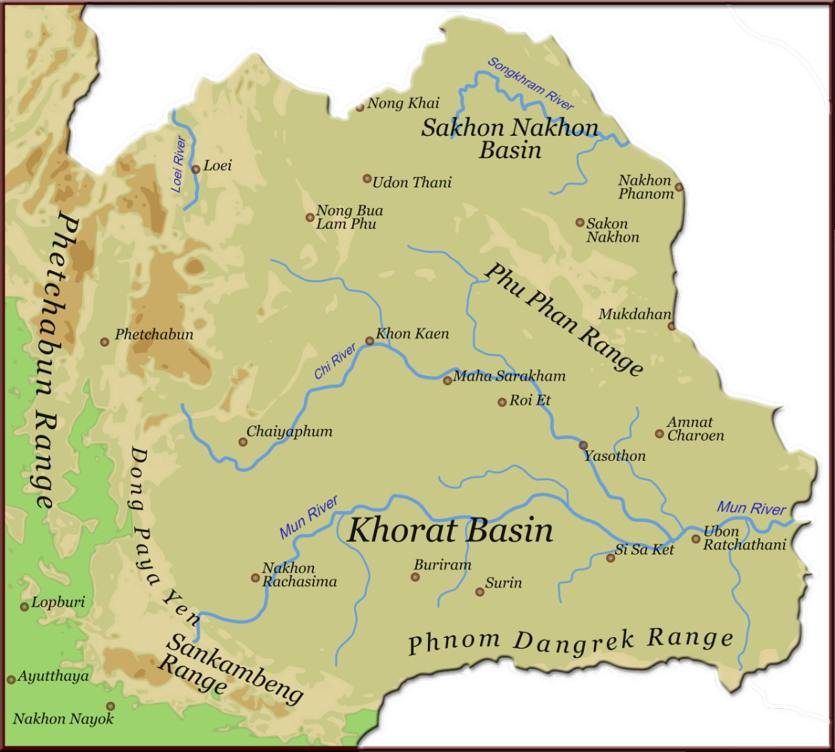 Le plateau de Khorat – dont le nom vient de l’abréviation de Nakhon Ratchasima – correspond à la région nord-est de la Thaïlande, mieux connue sous le nom … d’Isan ! Un espace délimité par des barrières naturelles qui, montagnes, fleuve Mékong, contrôlent l'accès vers et depuis la zone.