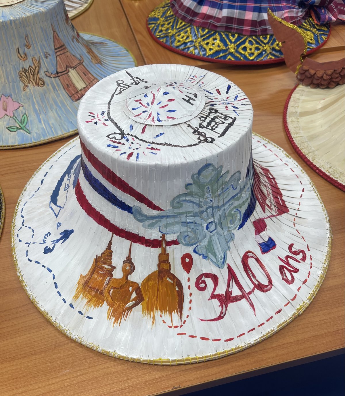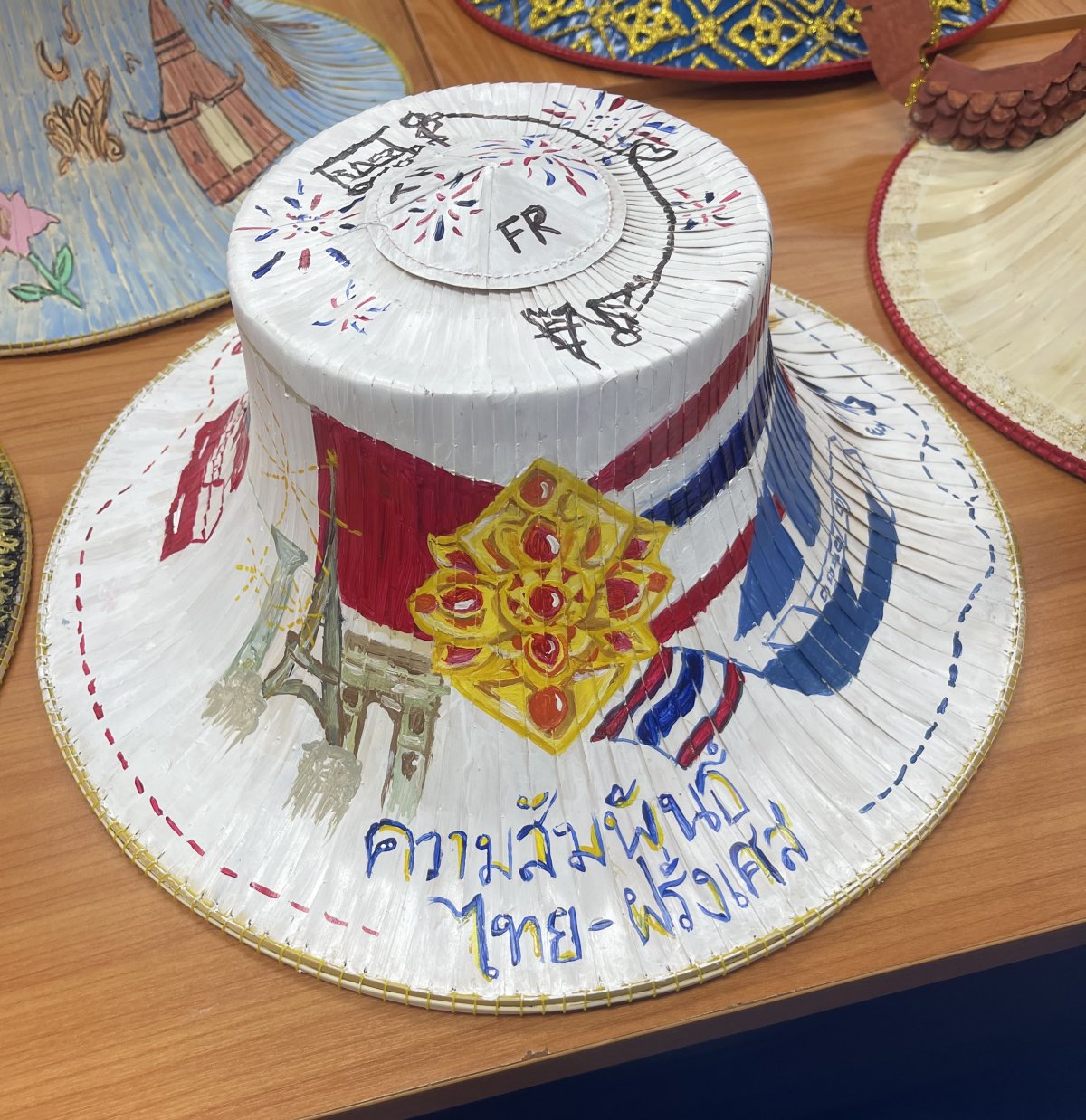 Plus de 60 duos d’enfants, accompagnés avec passion par leurs enseignants, ont répondu à l’appel. Chaque duo a peint un chapeau, mêlant couleurs, motifs et symboles pour raconter à sa manière cette histoire d’amitié franco-thaïlandaise. Et l’école s’est transformée, le temps d’un jour, en un véritable musée à ciel ouvert. Les rires fusaient, les mains s’agitaient, les regards brillaient, un moment suspendu, d’une beauté rare.