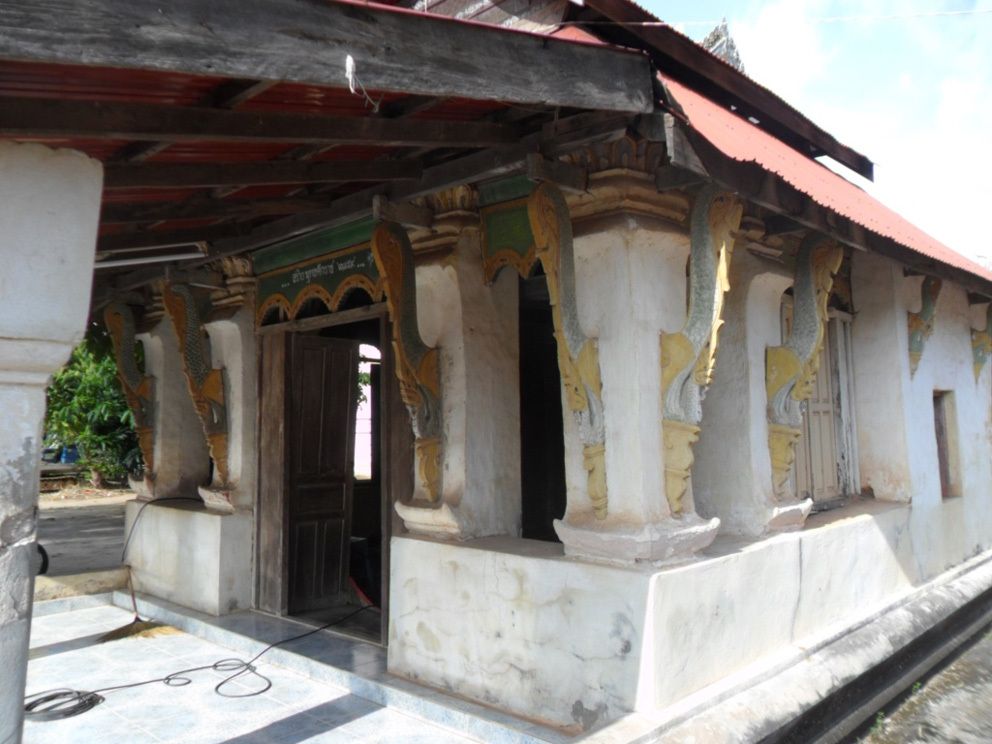 C’est par exemple le cas du Vat Phosi (วัดโพธิ์ศรี), « le temple de la sainte illumination » situé dans le district de Khamcha-i (คำชะอี), province de Mukdahan (มุกดาหาร). L’ancien Ubosot a disparu, remplacé par un bâtiment peint d’une couleur agressive, où les spères étaient en avril 2016 encore placées autour du bâtiment en attente de la cérémonie.
