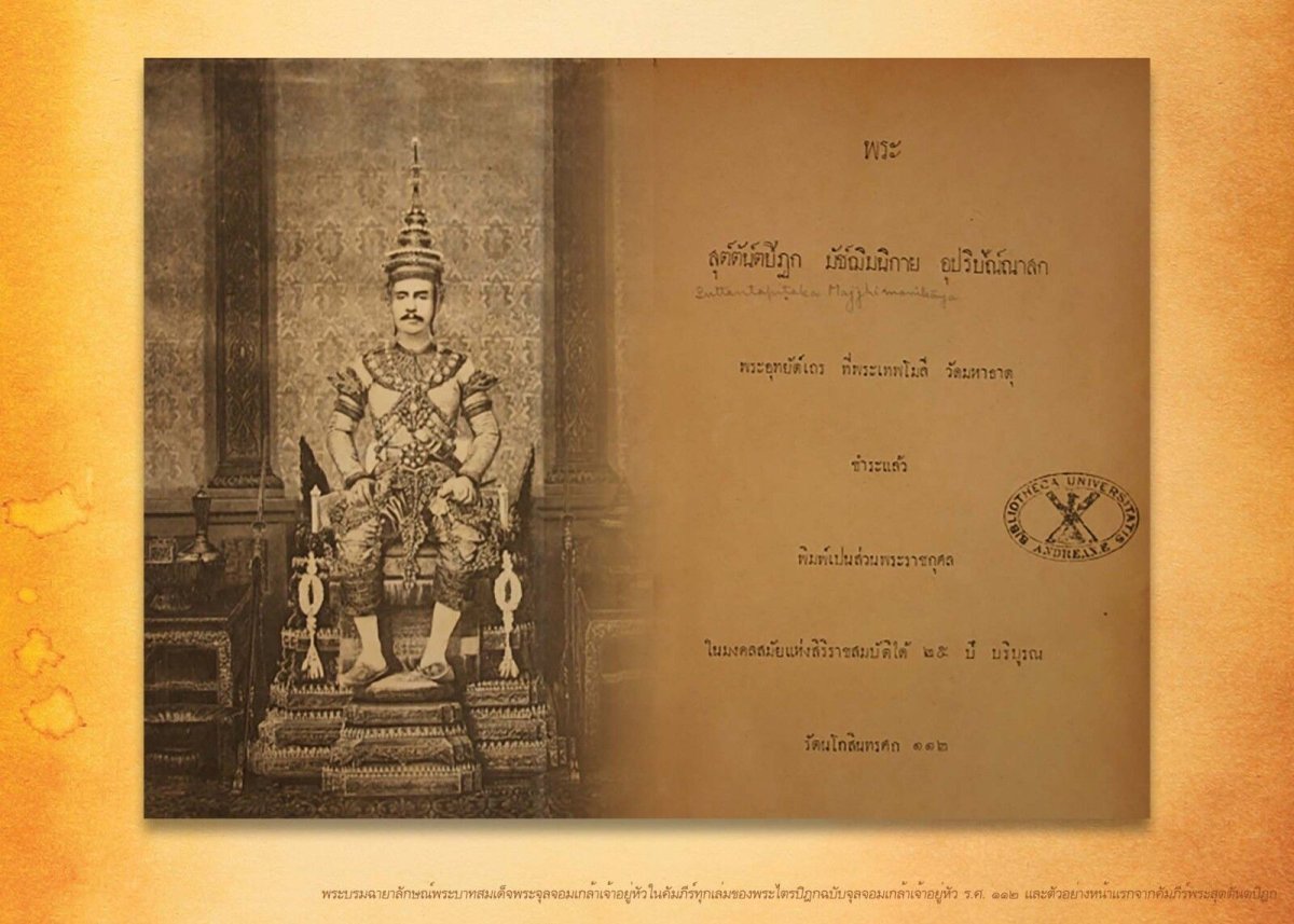 N'oublions pas que l'imprimerie en caractères thaïs ne s’est répandue que dans les dernières années du XIX siècle. C'est le roi Chulalongkorn qui a fourni le soutien financier après avoir chargé des experts en langue pâli en Thaïlande d'examiner et de réviser le Tripitaka pâli à l'origine inscrit en écriture khmère ancienne, comme sacrée. Cette tâche a été accomplie entre 1888 et 1893 et a été achevée et publiée en 39 volumes, connu sous le nom d'édition royale du Tripitaka, (พระไตรปิฏกฉบับพระราชทาน) en 1 000 exemplaires, et a, répandu dans divers établissements d'enseignement supérieur du bouddhisme a valu au Siam un renommée mondiale.
