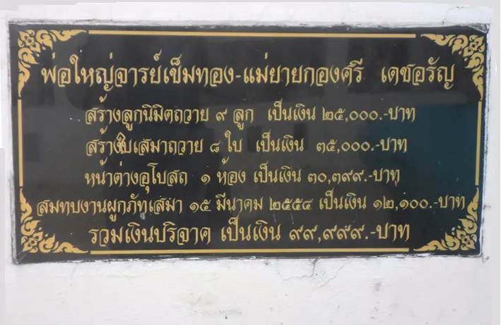 La contribution de cette famille pour 99.999 baths à la constructions de l'Ubosot du temple du milieu à Huaymek n'est qu'une parmi beaucoup d'autres :