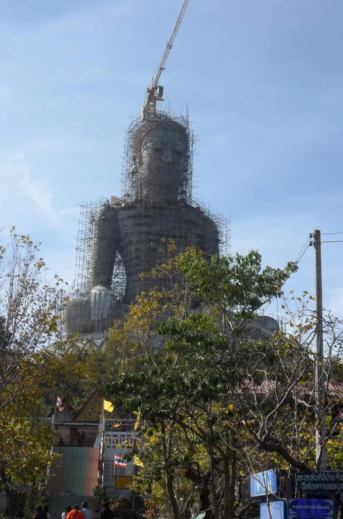 Statue d'un Bouddha géant (50 mètres) en cours de construction (2016) au Wat Khao Manarom à Mukdahan