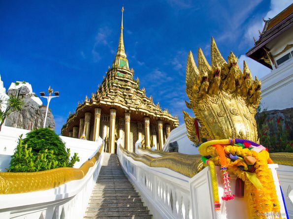 Le Naga (นาค) est un serpent mythologique géant (cobra) qui protège l’entrée des bâtiments du temple, souvent représenté avec plusieurs têtes. Leurs corps s'étendent le long des balustrades des escaliers qui conduisent à l’entrée du bâtiment.