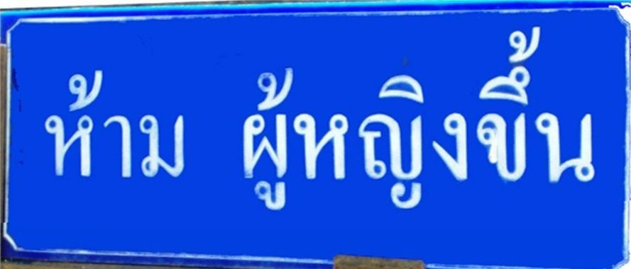 : Leur caractéristique est de se trouver sur les murs extérieurs et intérieurs, ce que l’on ne trouve nulle part ailleurs en Thaïlande. Pourquoi à l’extérieur ? Il n’y a qu’un bâtiment, souvent fort modeste, décoré, la chapelle d’ordination, ce qu’on appelle en langue locale le sim (ou sima สิม) qui est l’équivalent local (Lao et Isan) de l’ubosot (อุโบสถ), le hall d’ordination, un lieu sacré (9) qui était par définition interdit aux femmes. Mais comme les fresques ont – au moins partiellement un but didactique – l’instruction religieuse des femmes par les images se fait donc à l’extérieur. « Politiquement incorrect » ? Peut-être pour certains mais ce panneau photographié en 2010 à l’entrée d’une chapelle d’ordination mentionne toujours « Interdit aux femmes d’entrer » (10).