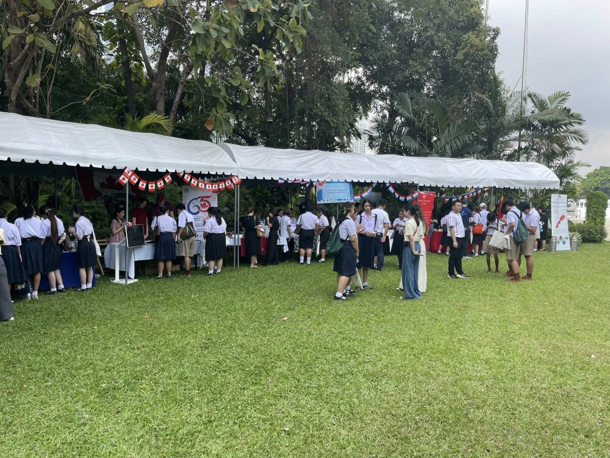 nos deux Jeunes Ambassadeurs de la Francophonie du collège de Korat, accompagnés de leur parrain, ont eu l’honneur d’être invités à participer aux côtés des autres lauréats venus de différentes provinces – à un grand rassemblement organisé dans les jardins de l’Ambassade de France en Thaïlande.