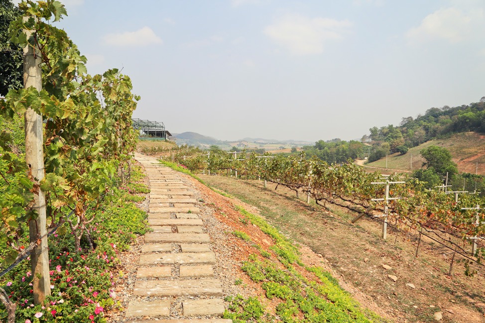 Le domaine est le seul en Thaïlande à utiliser le système de palissage Lyre, qui favorise l’exposition au soleil et la ventilation des grappes, améliorant ainsi la qualité des raisins.