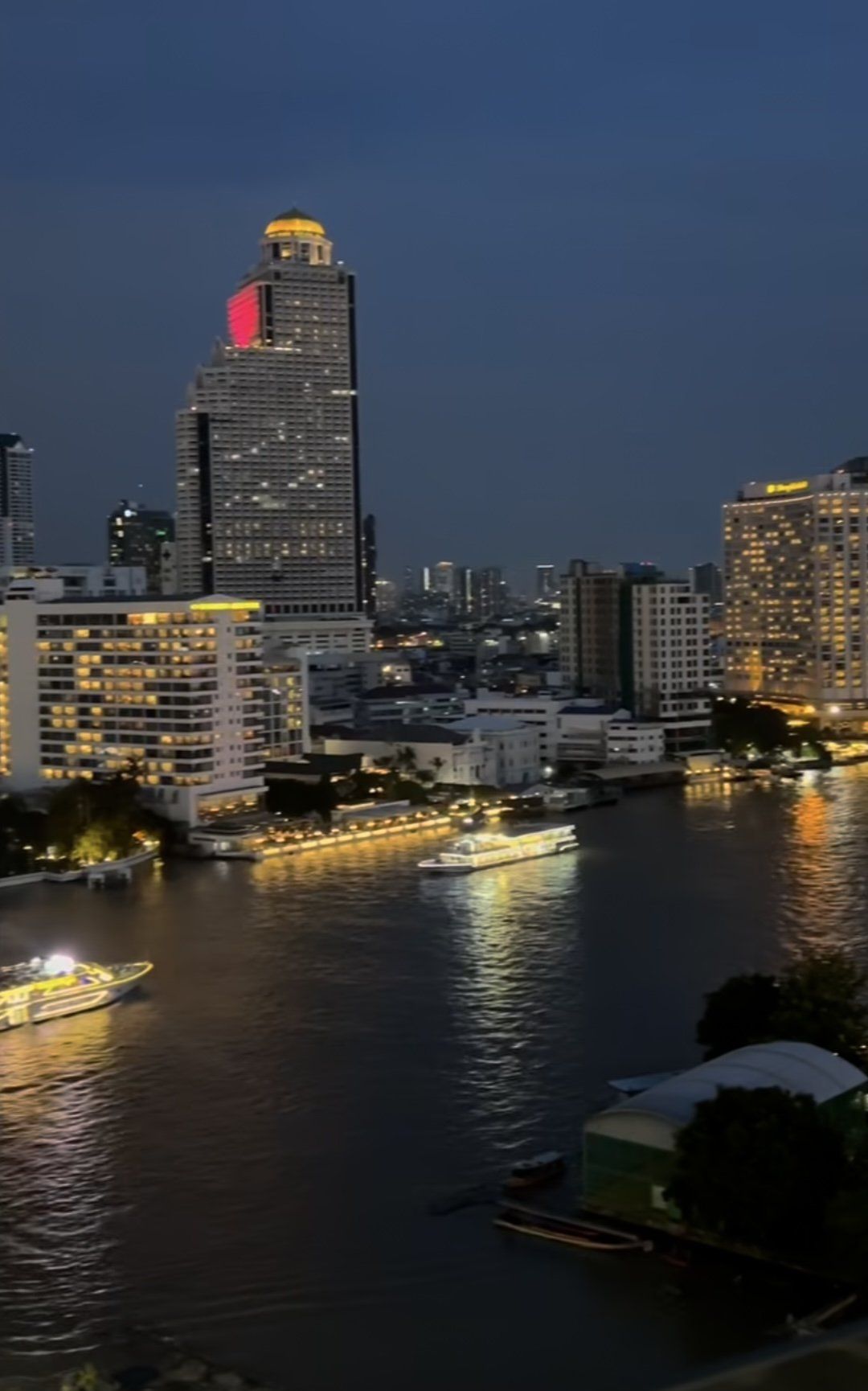 Au pied des tours et des hôtels haut de gamme, le fleuve alangui. Imperturbable. Impavide. Des bateaux-libellule paradent. De frêles embarcations avancent telle une formation de lucioles. Repérables à leur toit échancré, des jonques siamoises arpentent le ruban liquide. Enjouées. Facétieuses. Sur le pont de ces vaisseaux chamarrés, les visiteurs arborent une mine réjouie. Écarquillent les yeux. Nul ne résiste à la féerie qui s’incruste.
